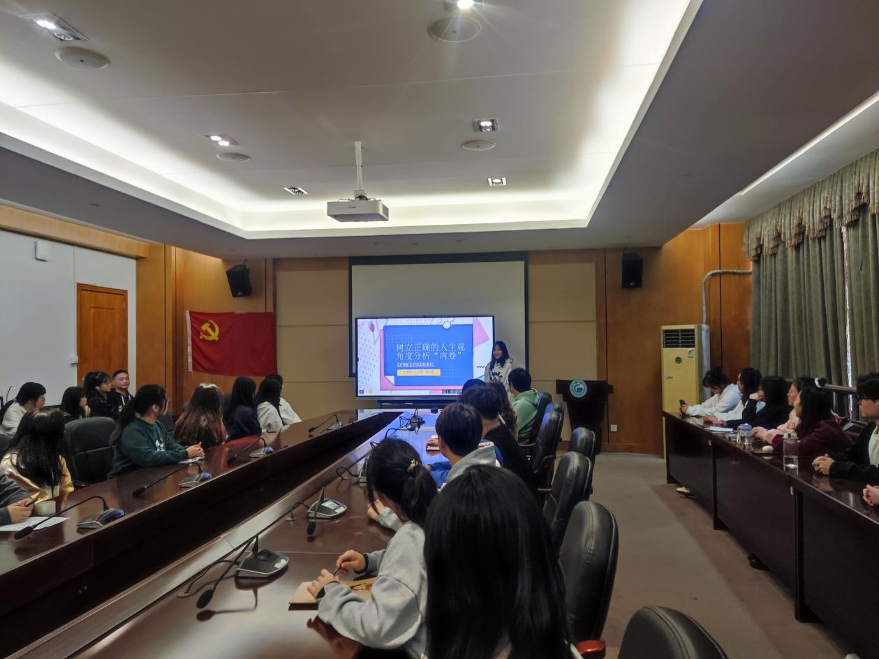 随后,杨庆先同志从正确理解内卷现象、内卷现象的利与弊、树立正确人生观应对内卷现象三个方面进行讲解,介绍了树立正确的人生观可以帮助应对"内卷"现象。通过培养兴趣爱好、树立正确价值观、合理规划时间、敢于接受失败、建立良好的自我评价机制、坚持自我反思、培养积极心态以及关注心理健康等方面入手,大家可以更好地应对内卷带来的挑战和压力,从而实现个人和社会的和谐发展。