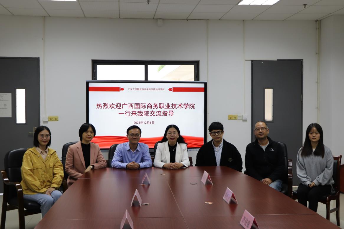 为推进高水平专业建设,进一步深化校企合作,促进职业教育高质量发展。12月8日下午,广西国际商务职业技术学院应用外国语学院院长黄忠电、商务英语教研室主任覃锋、应用英语专业带头人刘王娟一行3人莅临威尼斯官网交流考察。应用外语学院院长彭枚芳教授、英语系副主任陈锦英博士、学院办公室苏俊懿老师、黄奕老师参加本次交流活动。
