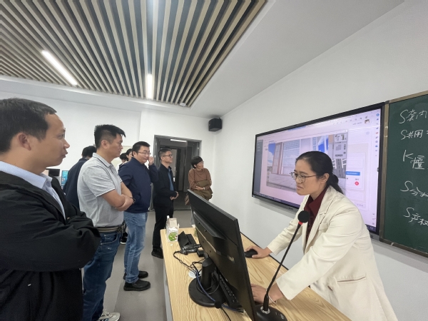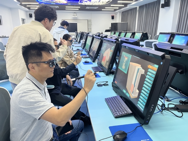 随后,广东科学技术职业学院一行实地参观了测绘地理信息虚拟仿真实训基地,并体验了Z-space桌面全息交互一体机。测绘学院相关负责老师详细介绍了虚拟仿真基地的教学应用情况。