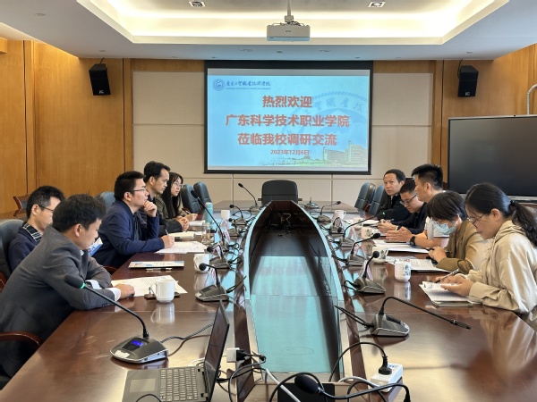 双方在明德楼1-201会议室进行了座谈交流。高照忠首先对广东科学技术职业学院的来访表示热烈欢迎,并就学校办学历程和测绘学院基本情况进行了详细介绍。接着双方就职业院校技能大赛、测绘地理信息虚拟仿真实训基地、专业建设、人才培养、校企合作等方面进行了经验交流和深入研讨。