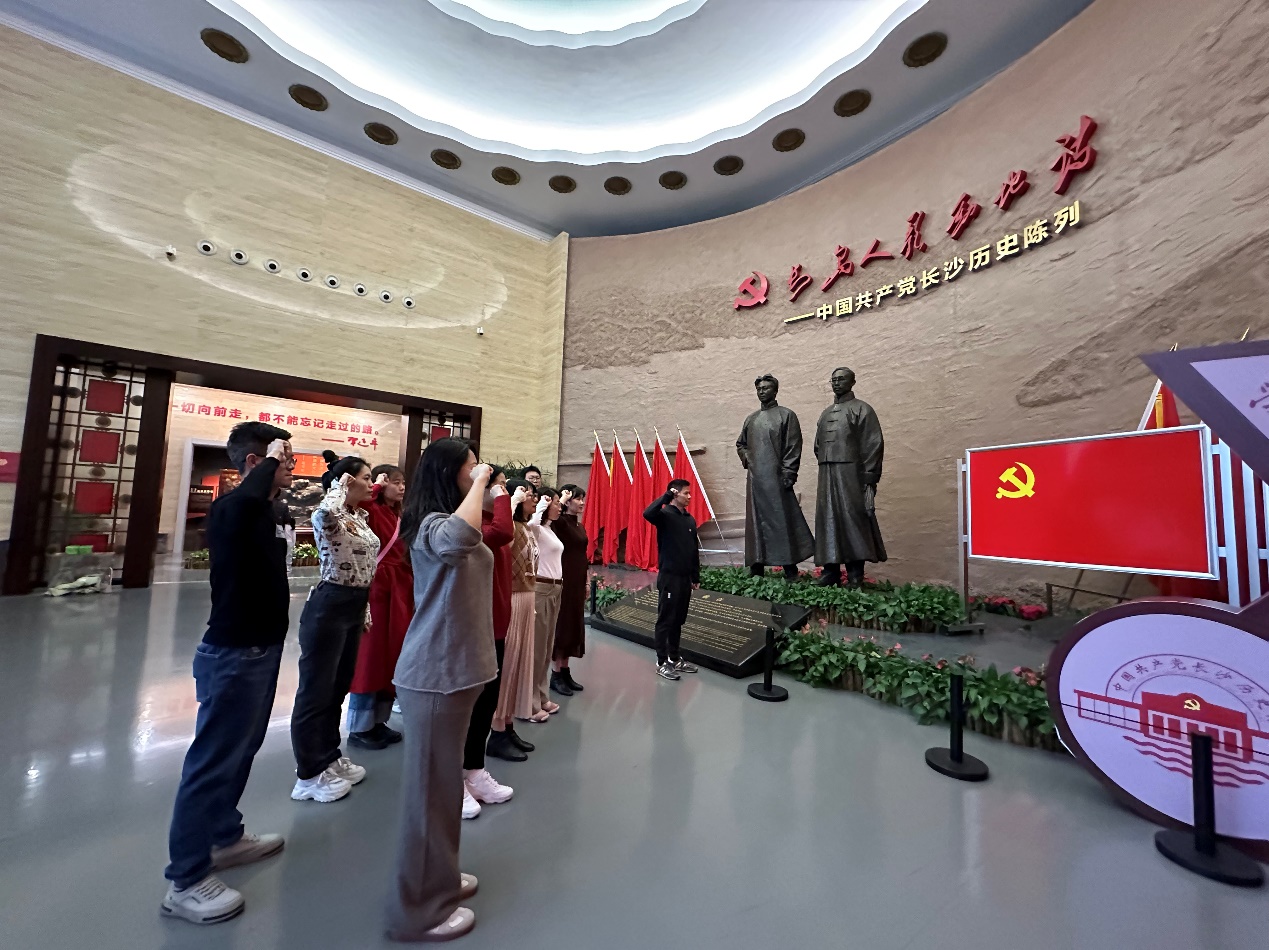 长沙党史馆是长沙市唯一的专题党史陈列馆,全面展示了长沙地区的党史党建工作。在这里,毛泽东领导了中共湘区委员会开展的湘区工人运动,农民运动和学生运动,使湘区成为当时中国革命运动最活跃的地区之一。在毛泽东、何叔衡从长沙赴上海参加党的一大的雕塑前,罗春科组织参加活动全体成员重温入党誓词。