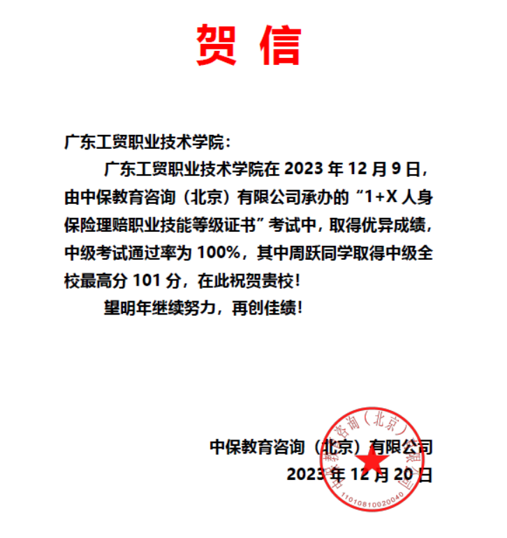 近日,1+X 人身保险理赔职业技能等级证书(中级)考试成绩公布,工商管理学院共有60名学生参加本次考试,参考同学全部通过考核,证书通过率首次达100%。
