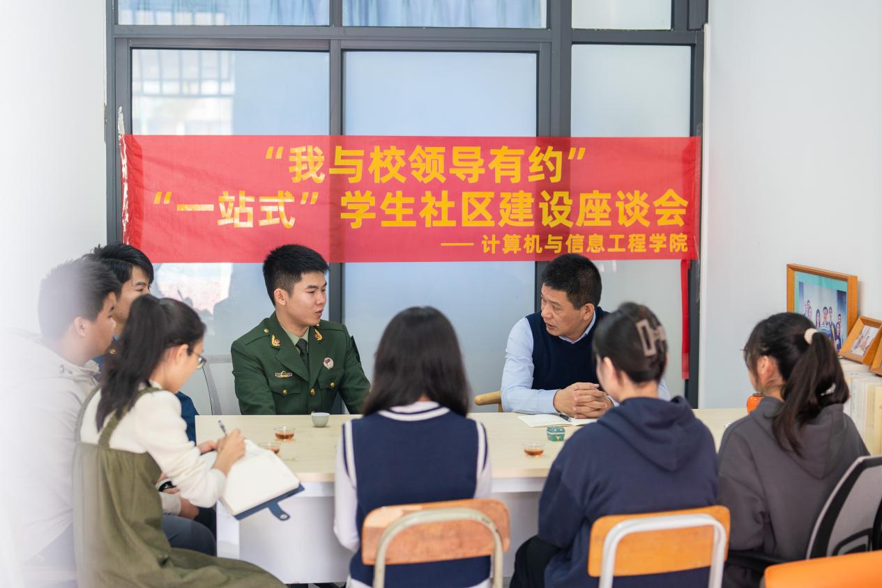 为进一步推动学校关于“一站式”学生社区综合管理工作走深走实,更好地关注学生发展、激发学生的磅礴力量。计算机学院班主任工作室于2024年1月2日开展“我与校领导有约”为主题的“一站式”学生社区调研座谈会,学校党委委员、副校长唐毓秋与六名计算机学院学生代表进行了座谈,会议由辅导员邹少兰主持。