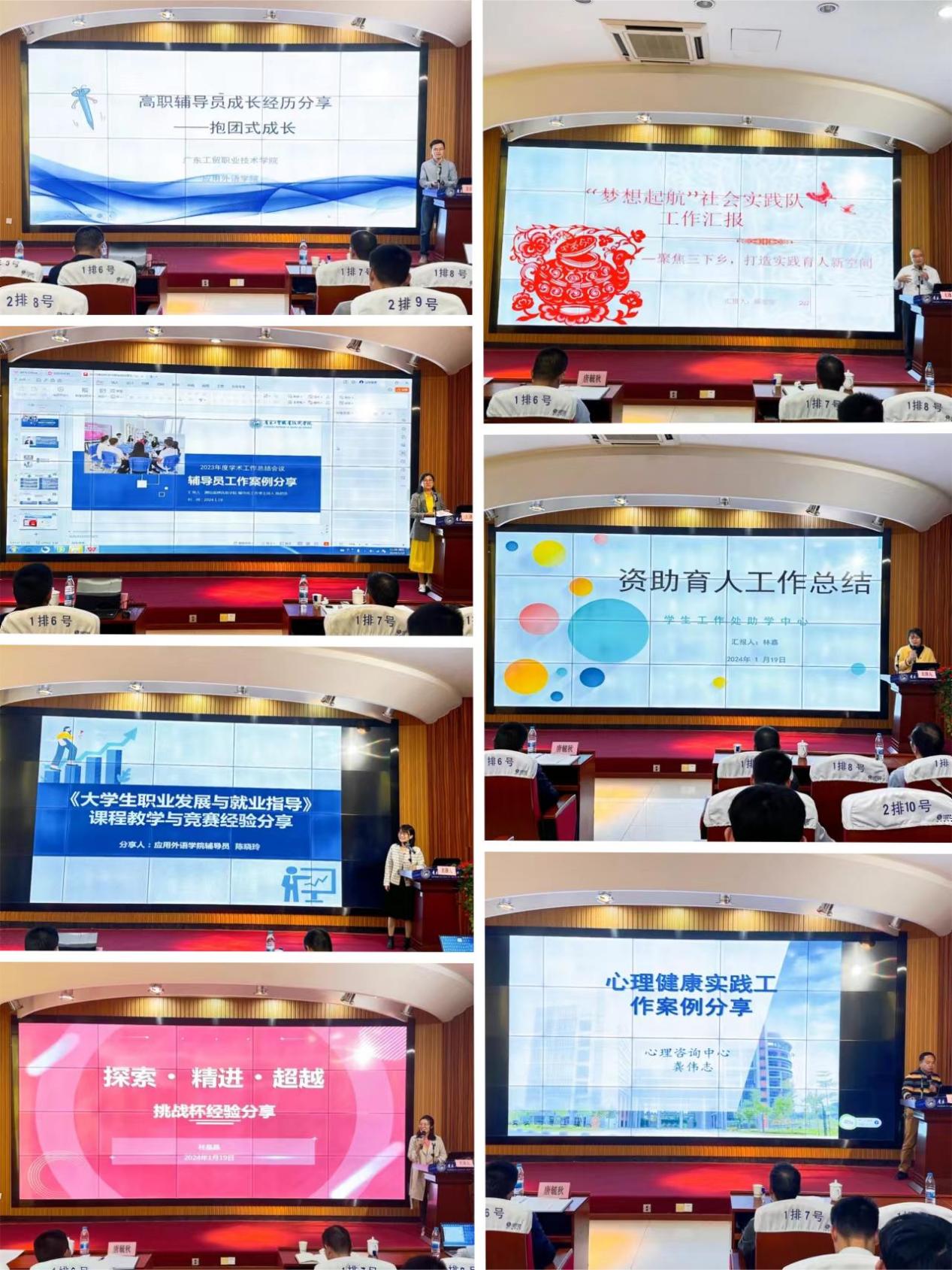 会上,辅导员林耀佳老师向大家分享了辅导员成长经历;陈君浩老师阐述了学生工作案例撰写方法;陈晓玲老师对思政类课程(大学生职业发展与就业指导)教学及竞赛分享交流;桂晶晶老师围绕挑战杯备赛实战经验进行了交流;陈宏伟老师分享了组织学生社会实践活动之经验;学生处林嘉老师对资助育人进行总结和汇报;龚伟志老师对心理健康实践工作案例进行分享。在学工队伍及辅导员队伍建设研讨环节,与会人员结合学校实际,围绕工作重难点进行了交流发言,为学生工作更好的发展建言献策、互学互鉴。