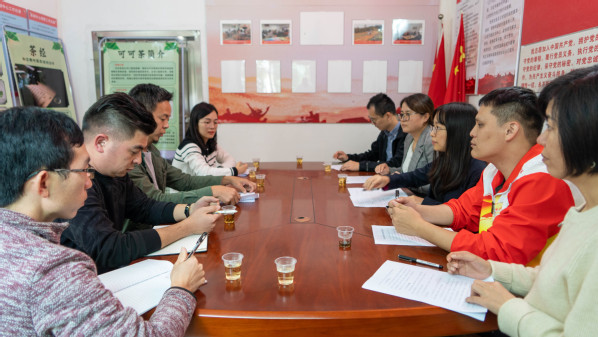 随后,在测绘遥感信息学院与古洞村校村党组织结对共建座谈会上,双方进行了深入的交流,并就党建共建达成了共识。古洞村党支部书记、村委会主任潘记祥向大家介绍了古洞村特有的毛茶繁育、潘嘉圆茶业专业合作社发展情况、茶空间体验馆建设思路等,形成了党建引领乡村发展的新格局。测绘学院冯臻佳介绍了学院学科专业优势,希望通过党组织结对共建,加强双方的沟通与合作,加强组织建设形式创新,以党建引领凝聚合力,引领推动各项工作顺利开展,全面激发乡村振兴内在动力。
