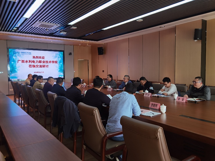 2024年3月19日下午,广西水利电力职业技术学院学校党委委员副校长蒋文沛、信息中心主任孙凯、副主任图书馆馆长苗志峰等一行7人到威尼斯官网开展调研交流活动。学校党委委员副校长唐毓秋、信息中心主任王斌、信息中心副主任卢志海等接待来访并出席了座谈会。