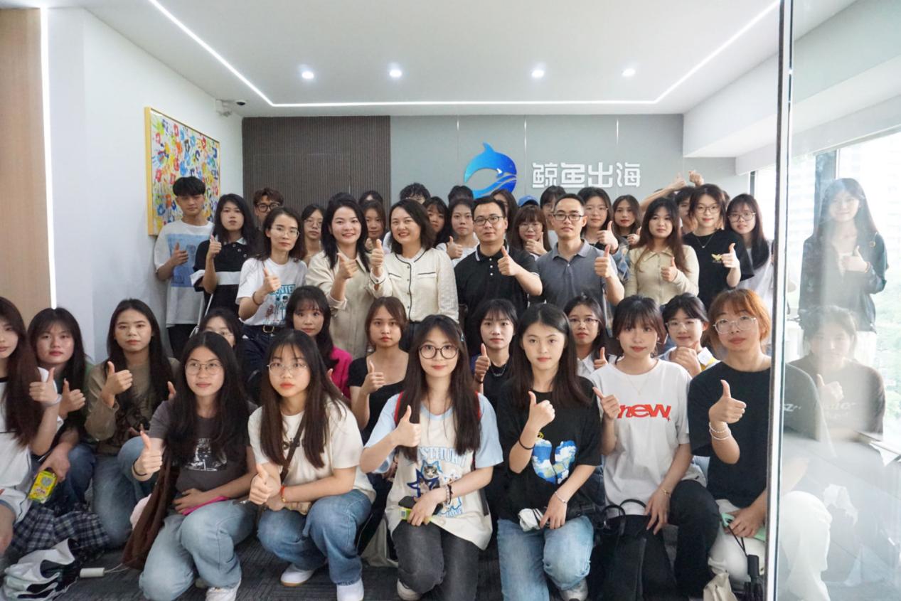 2024年3月27日,广州鲸鱼出海科技有限公司副总经理李慧慧亲自到杨海娜老师课堂针对公司概况及目前的业务现状进行宣讲,学生对广州鲸鱼出海科技有限公司已经拥有初步的了解和认识。为了让师生对公司拥有更进一步更直观的认识和感受,2024年3月30日,市场营销专业带头人黄华乾和专业教师杨海娜带领市场营销专业四十余名学生奔赴广州鲸鱼出海科技有限公司参观,并进一步洽谈校企合作事宜。广州鲸鱼出海科技有限公司总经理杨桃、副总经理李慧慧和人力资源部经理吴宇虹接待了来访的师生。
