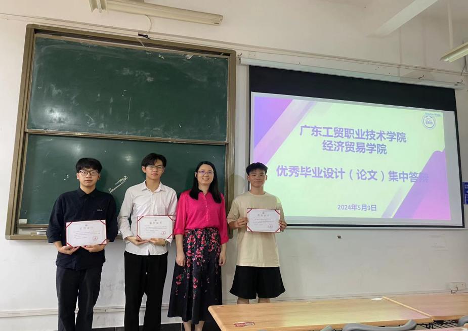 为加强对毕业生综合能力的考核,确保学生毕业设计(论文)质量,并强化学生对专业知识的应用,经贸学院于2024年5月9日下午开展了2024届毕业生毕业设计(论文)线下答辩工作。此次答辩一共设置了25个答辩会场,2024届1177名毕业生参加了此次答辩。全学院推选出优秀毕业设计(论文)作品共20篇,优秀毕业设计(论文)集中答辩会场位于明德楼1-417教室,答辩小组成员由经贸学院党总支书记李繁、副院长蒋晶、专任教师伍炜勤、李波、王玮君组成。2023届各学生代表也积极参与观摩此次集中答辩活动。