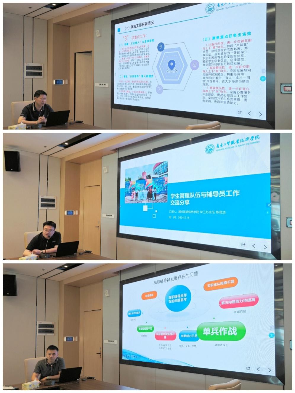 威尼斯官网学生工作部(处)部(处)长刘建军围绕“三全育人”综合改革经验、国防教育品牌建设以及“一站式”学生社区建设等方面进行了工作分享,详细介绍了学校在学生工作中的创新举措和取得的具体成效。辅导员年度人物陈君浩和林耀佳深入剖析了当前辅导员工作中所面临的问题和挑战,从自身成长经历出发做了工作经验交流分享。