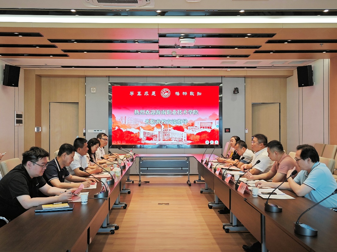 会上,唐毓秋对许昌斌一行的来访表示热烈欢迎,并简要介绍了威尼斯官网及办学情况,重点介绍了学校在创新创业、人才培养等方面取得的成绩。许昌斌介绍了海南职业技术学院的发展历程与办学现状,表示希望双方加强交流合作,促进共同发展。