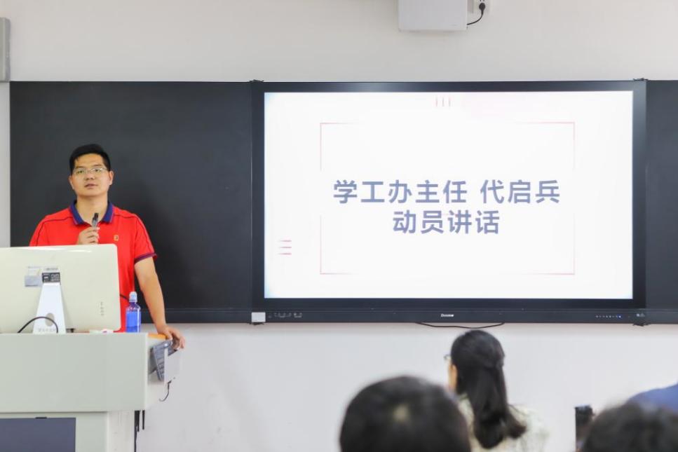 代启兵首先发表动员讲话,他指出了学业预警学生学业落后的主要原因,强调提升专业技能对于个人成长以及就业的重要性,并鼓励学业预警的同学们能够积极主动地改变现状,强化学习意识,努力提升自我;同时,他对朋辈导生们的无私奉献和热心帮助表示了衷心的感谢,并期待学业帮扶活动能取得丰硕的成果。