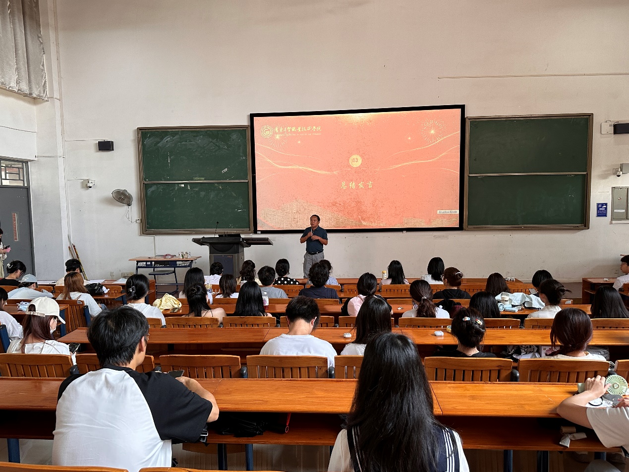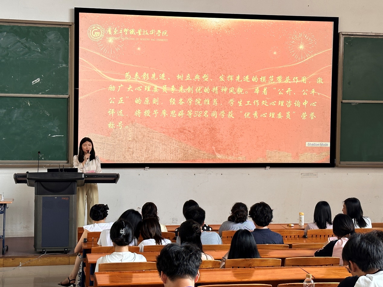 本次大会第三部分内容为总结发言,由心理老师龚伟志主讲。为同学们科普心理健康小知识,并分析心理问题产生的原因,呼吁广大同学以及心理委员要更加关注班级同学的心理状态,尤其要重点关注突然发生变化或有明显异常行为的同学。此外,龚伟志老师还指出一旦发现身边同学出现不良情绪或者心理压力时,作为一名心理委员,我们应及时帮助他们调节情绪,化解压力,保持良好心情,提高抗压能力,在有相近的价值观念、经历、交往圈子的条件下,帮助同学解开一些心理困惑。