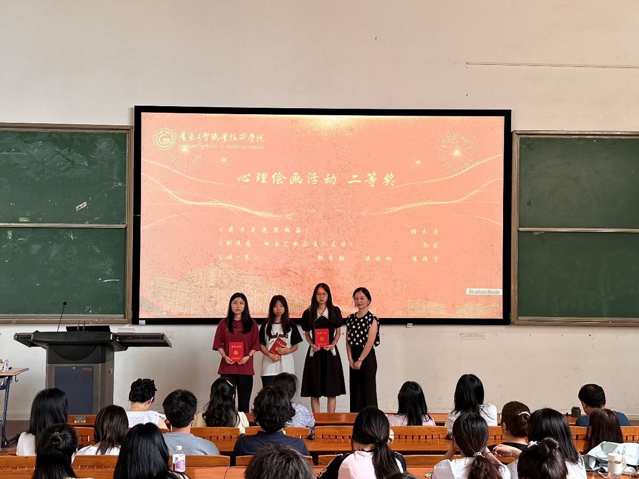 周灿老师为心理绘画活动获奖同学进行颁奖